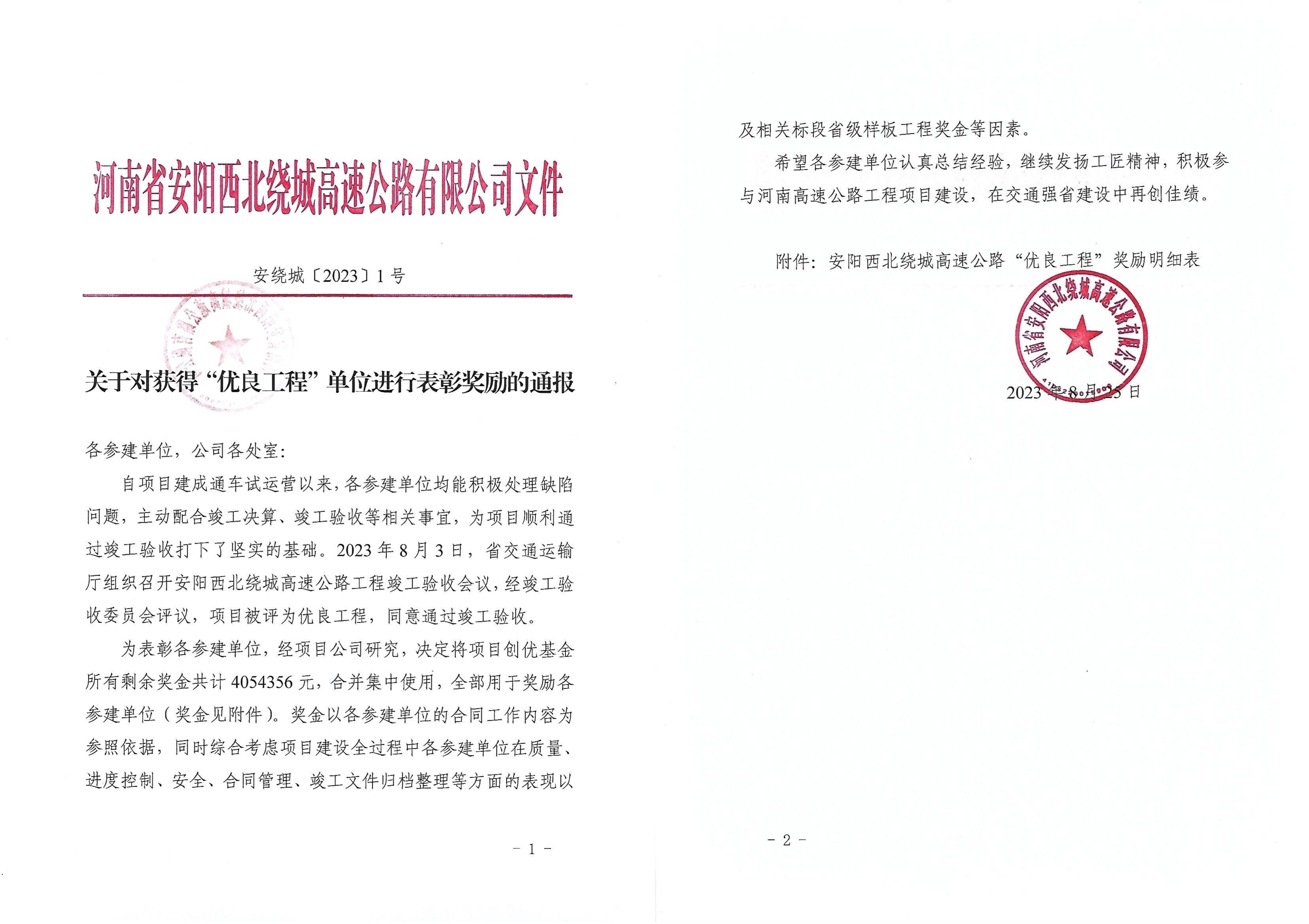 近期,,365英国上市路港承建安阳西北绕城高速公路顺遂通过完工验收,,被评为“优良工程”,,获评了“河南最美高速公路”称呼。。。同时,,业主单位凭证项目参建单位建设历程中在质量、进度控制、清静、条约治理、完工文件归档整理等方面的体现以及在样板工程打造中的孝顺举行了表扬。。。安阳西北绕城高速公路TJ-4标项目喜获业主最高奖励,,喜获奖励90万元人民币。。。
