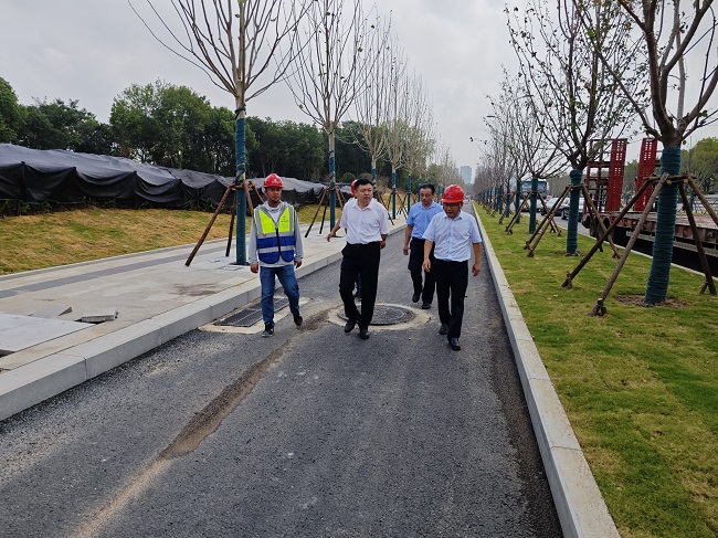 章浩一行深入青海路项目施工现场,,,实地相识项目收尾事情希望情形,,,重点关注项目沿线绿化施工,,,对项目苗木施工、树池盖板施工等体现高度认可。。