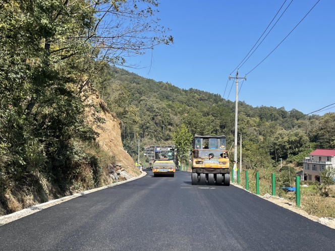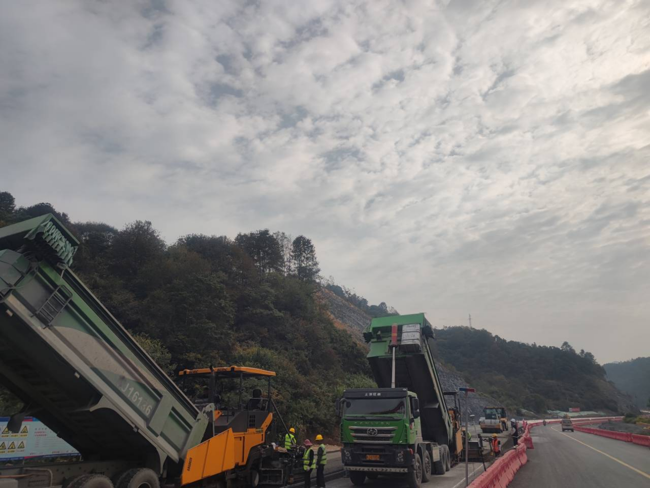 克日,,,,金寨县 X226、X469 永佛至长岭段蹊径提升工程建设已周全进入沥青摊铺施工阶段,,,,施工路段沥青摊铺、清扫及透封层洒布和防排水工程同步推进实验,,,,项目各责任部分通力相助、相互配合,,,,全力包管施工使命节点高效高质完成。。。。