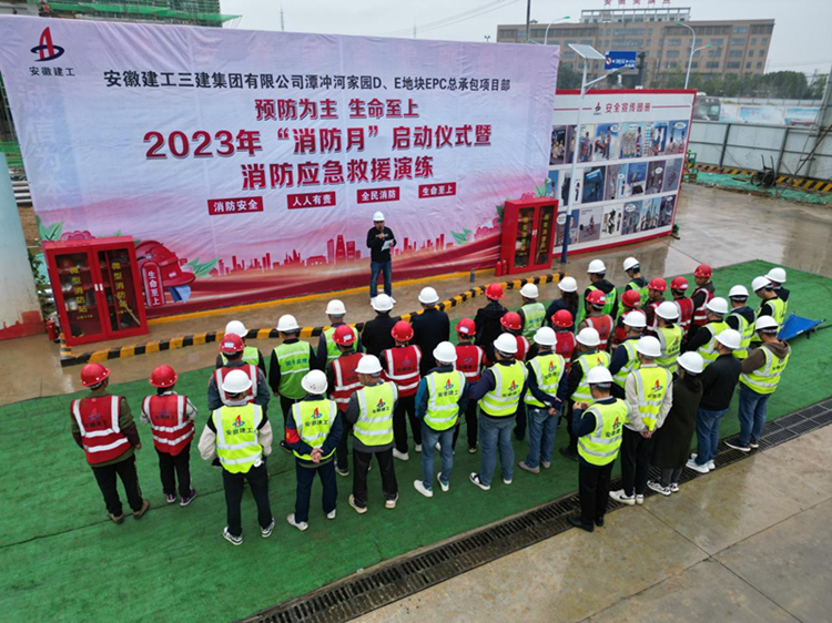 11月9日上午,,四分公司承建的潭冲河家园D、E地块EPC总承包项目部开展2023年“消防月”启动仪式暨消防应抢救援演练活动。。