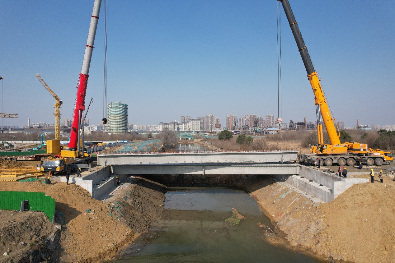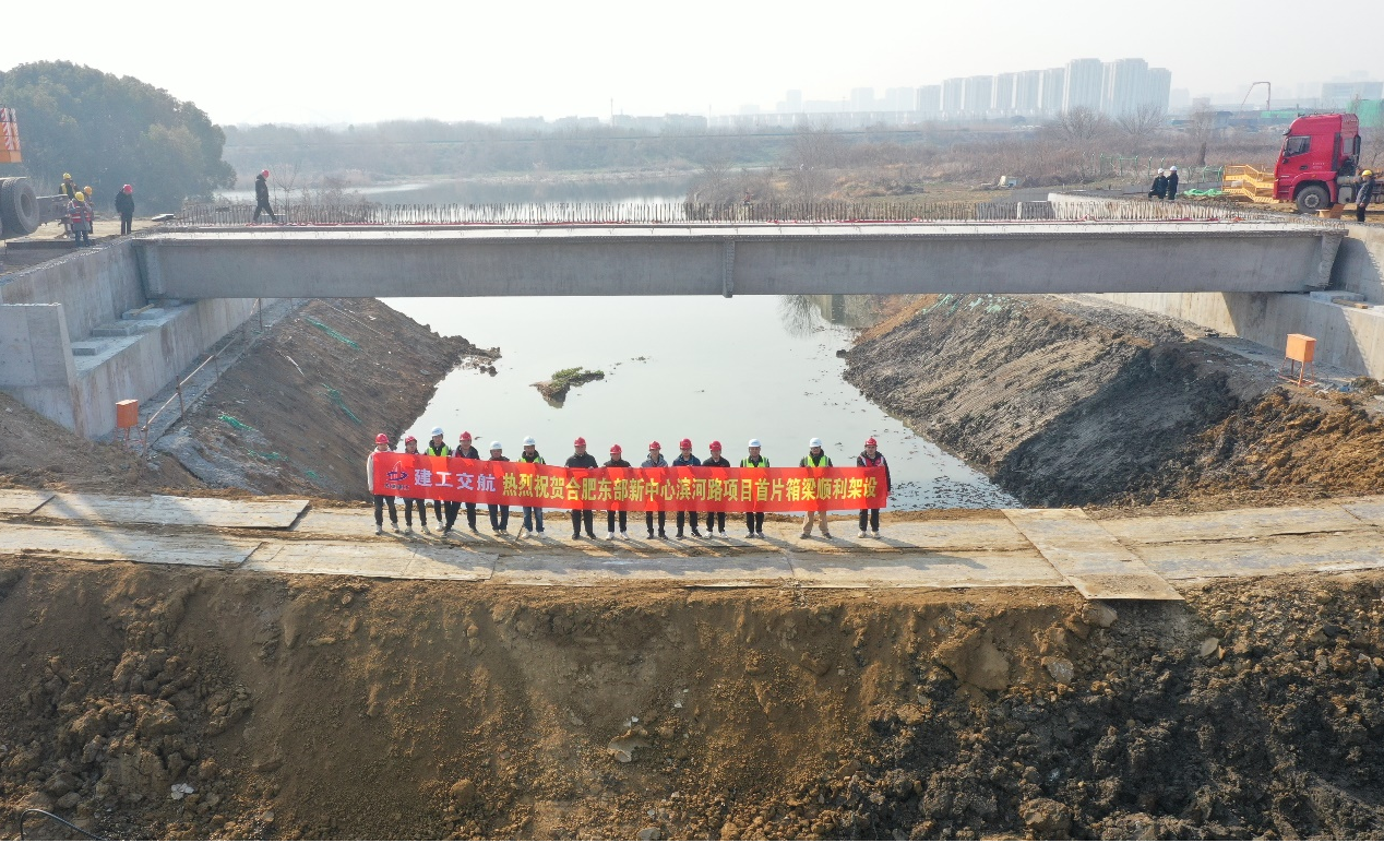 克日,,合肥东部新中心滨河路蹊径工程施工5号河桥预制箱梁顺遂完成架设,,标记着项目施工迈入要害阶段。。。