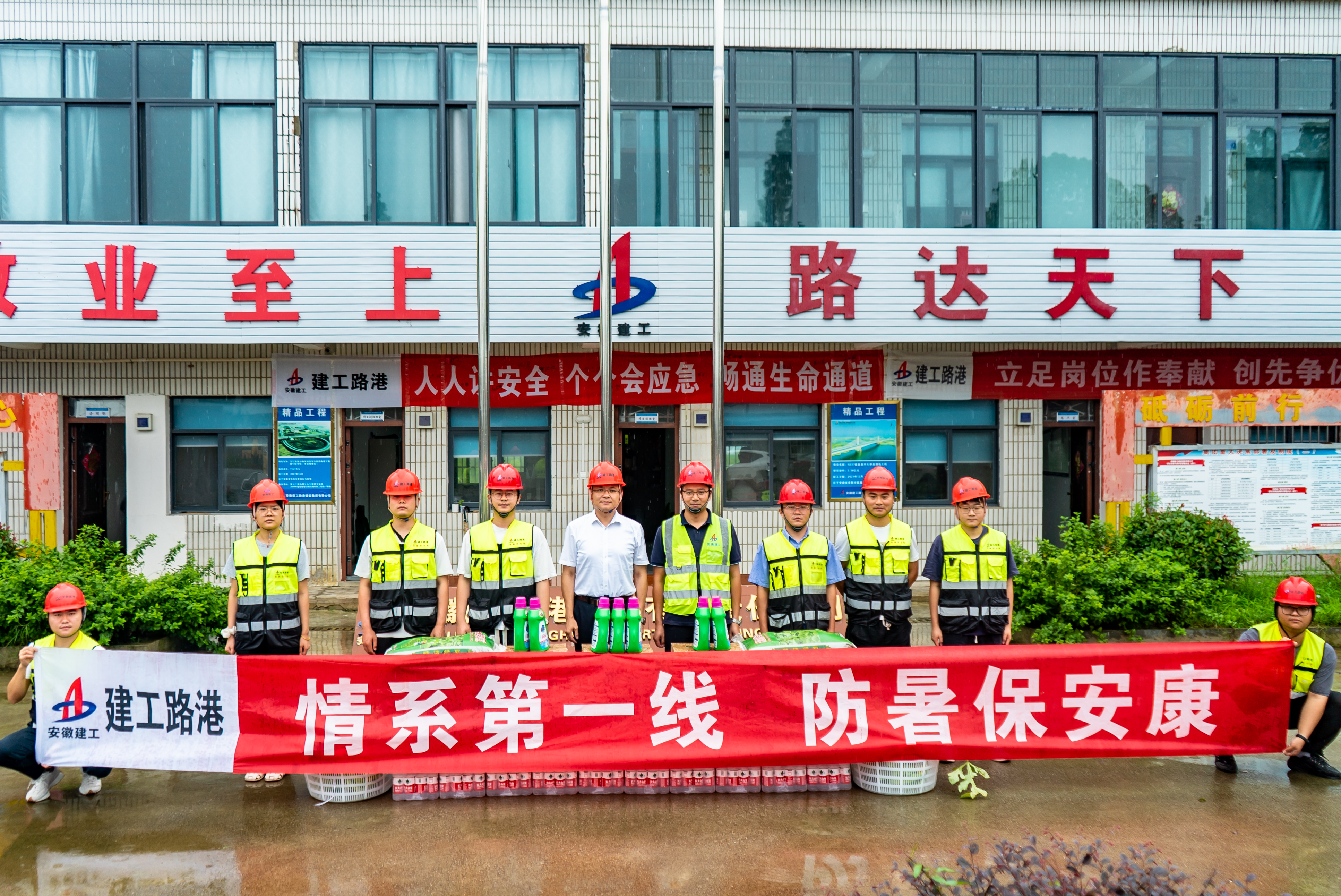 李建成深入施工现场,仔细审查了项目建设和员工事情生涯情形,,,,为奋战在一线的职工送上饮料、洗漱用品、防暑降温品,,,,向项目全体施工职员体现亲热问候,,,,谢谢各人为公司清静生产和高质量生长做出的起劲孝顺。。。。他强调,,,,项目建设要紧扣生产谋划目的使命,,,,着力施展群众优势,,,,科学统筹施工,,,,并嘱咐各人增强自我防护,,,,注重防暑降温,,,,合理安排休息时间,,,,确保各项生产使命的顺遂开展。。。。
