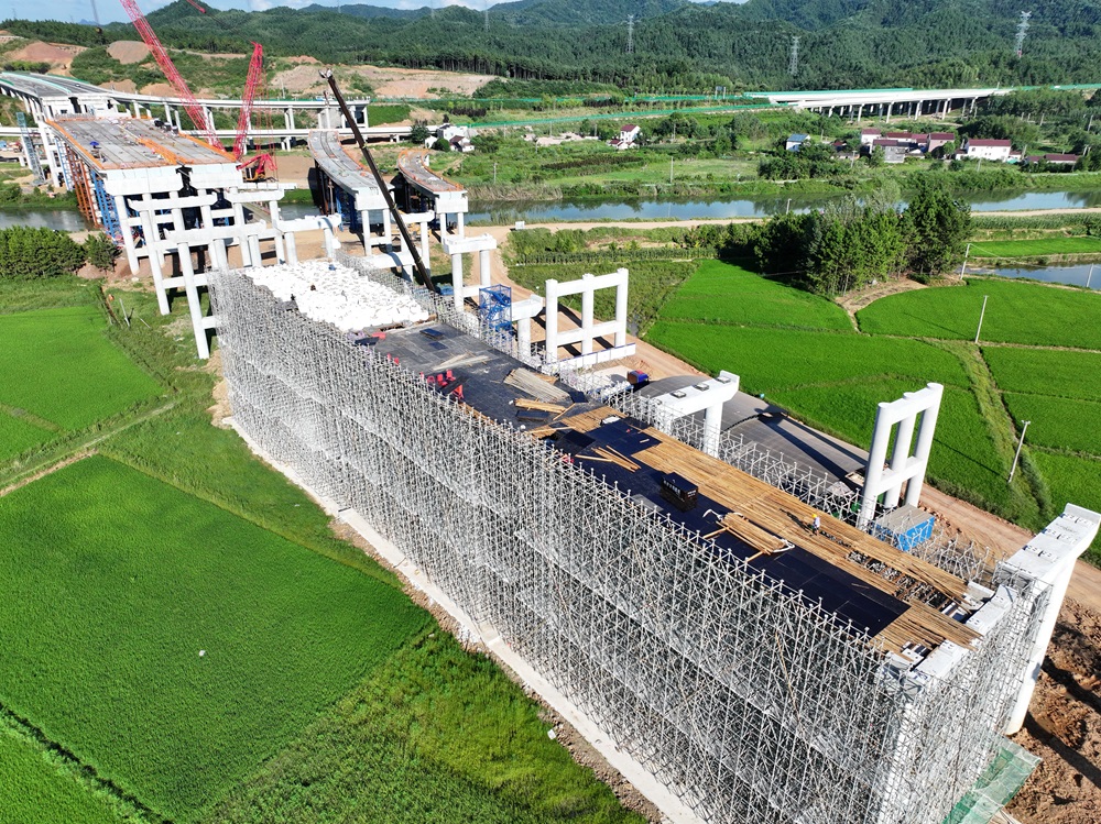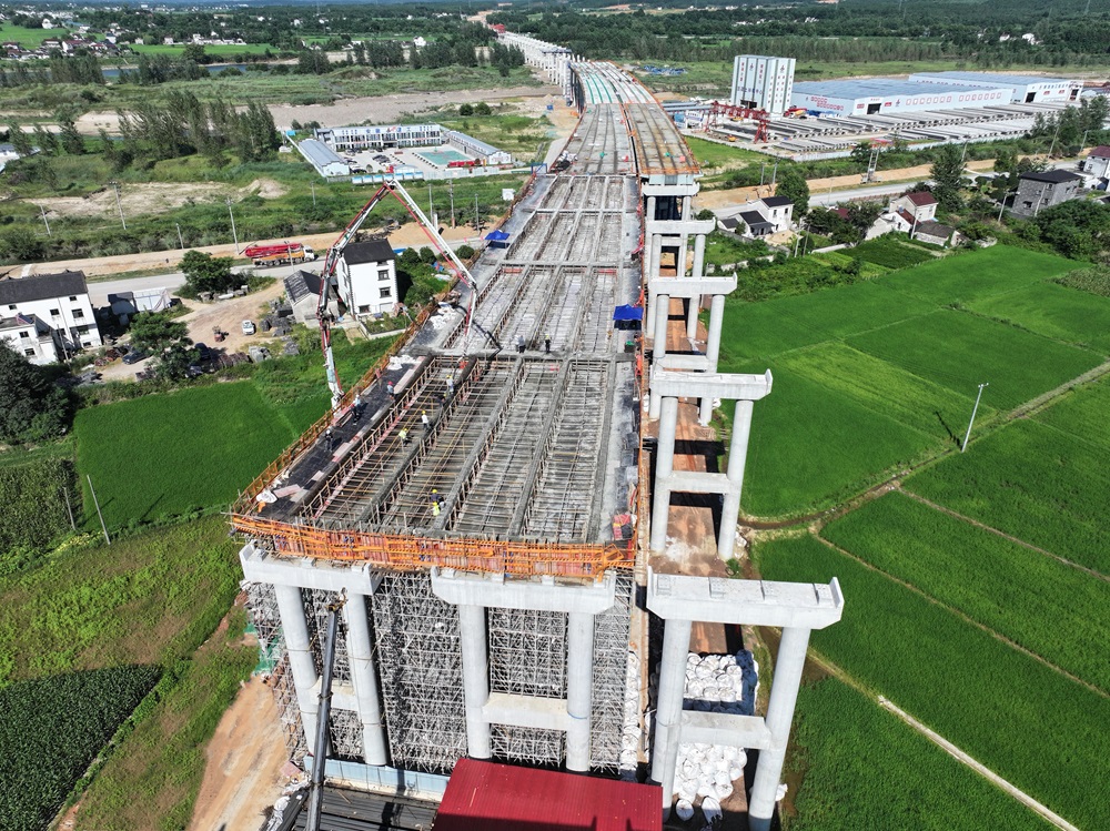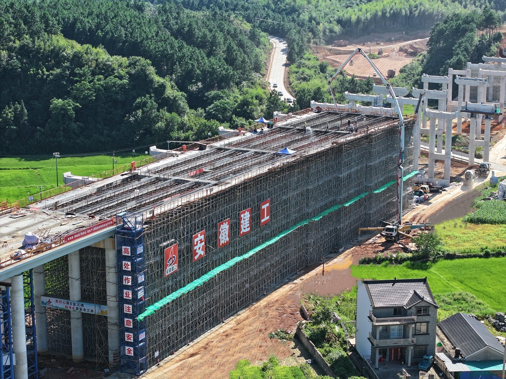 青弋江特大桥主线共有两联现浇箱梁,,,,,,现在正在架设的是右幅第14联。。泾县枢纽和清溪河大桥主线桥下部施工均已完成,,,,,,施工重心已转移至上部结构。。阻止现在,,,,,,泾青高速项目今年度已完成投资占年度妄想的66.38%。。