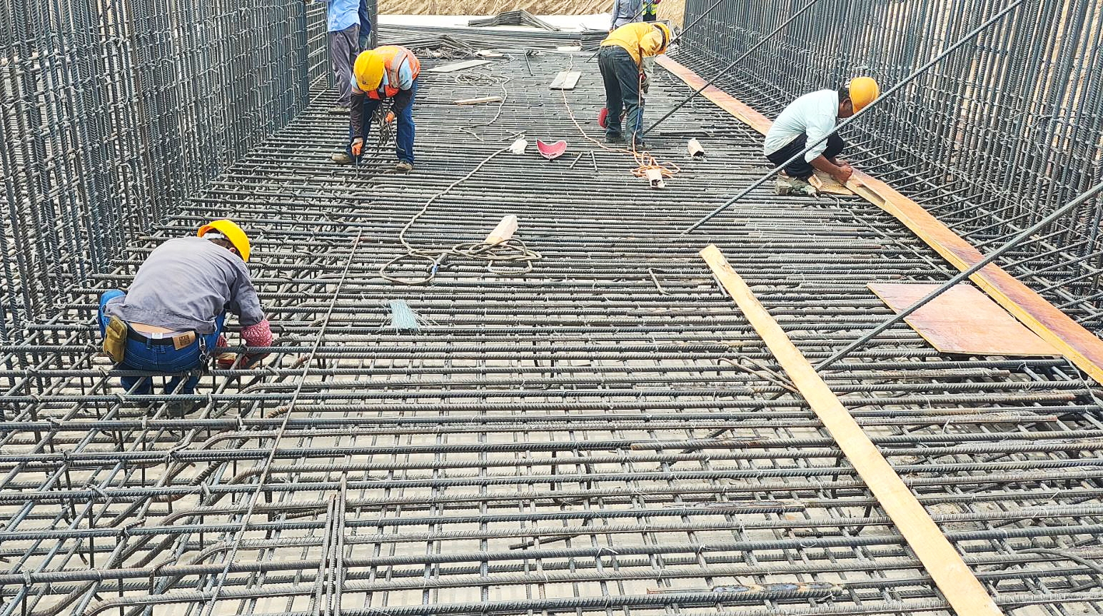 宿州泗县绿色工业园项目-濉河路双孔箱涵底板钢筋焊接及绑扎