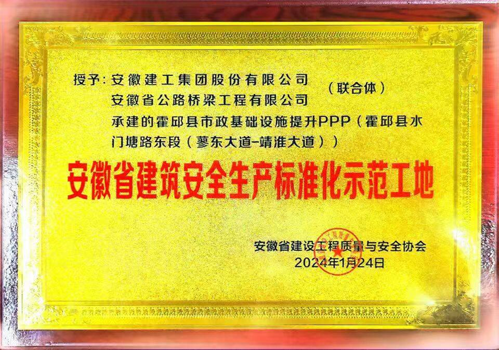 克日 ,,,,,365英国上市投资霍邱PPP项目水门塘路东段(蓼东大道-靖淮大道)工程被安徽省建设工程质量与清静协会授予“安徽省修建清静生产标准化树模工地”声誉称呼。 。。