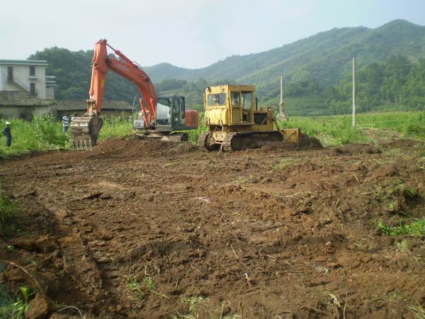 8月5日上午,,,,省路桥集团黄祁高速05标的第一条施工便道正式取土动工。。。。。。