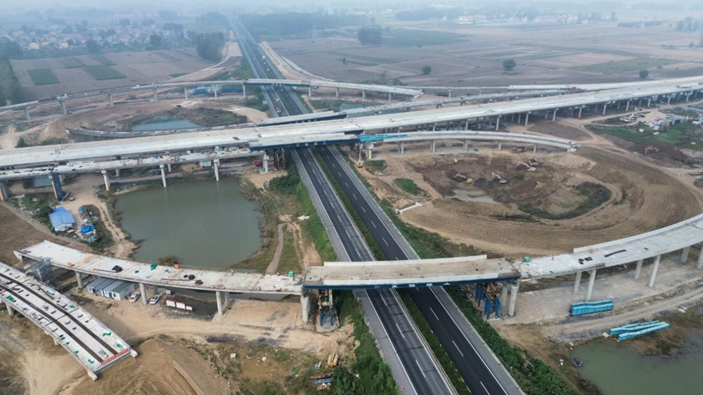 10月17日,,,,,随着最后一片77米长的钢箱梁徐徐落到指定位置,,,,,徐淮阜高速宿州段路基工程02标项目孙圩子互通6座上跨连霍高速钢箱梁顺遂完成顶推架设,,,,,标记着徐淮阜高速项目要害节点工程再次取得重大突破。。。