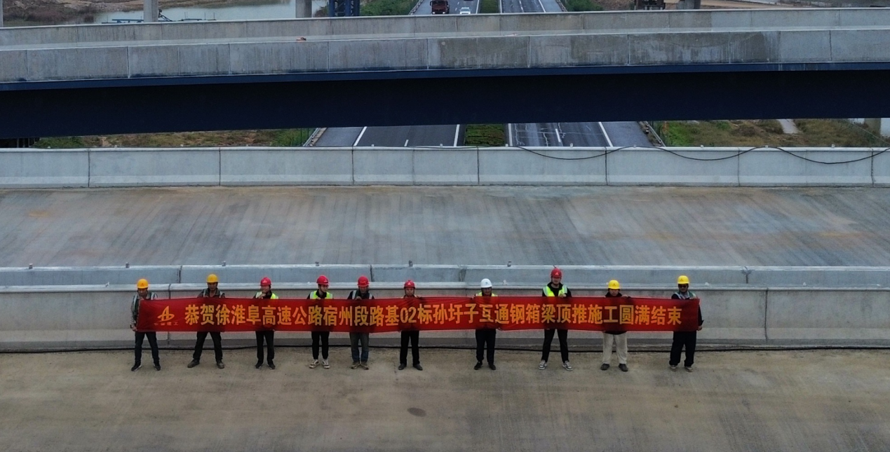 此次孙圩子互通区钢箱梁顶推的圆满完成,,,,,为未来的钢箱梁顶推施工积累了名贵的履历,,,,,极大鼓舞了项目部全体职员的士气。。。。项目部将继续全力以赴,,,,,战胜种种难题,,,,,确保徐淮阜高速项目准时高质量完成。。。。