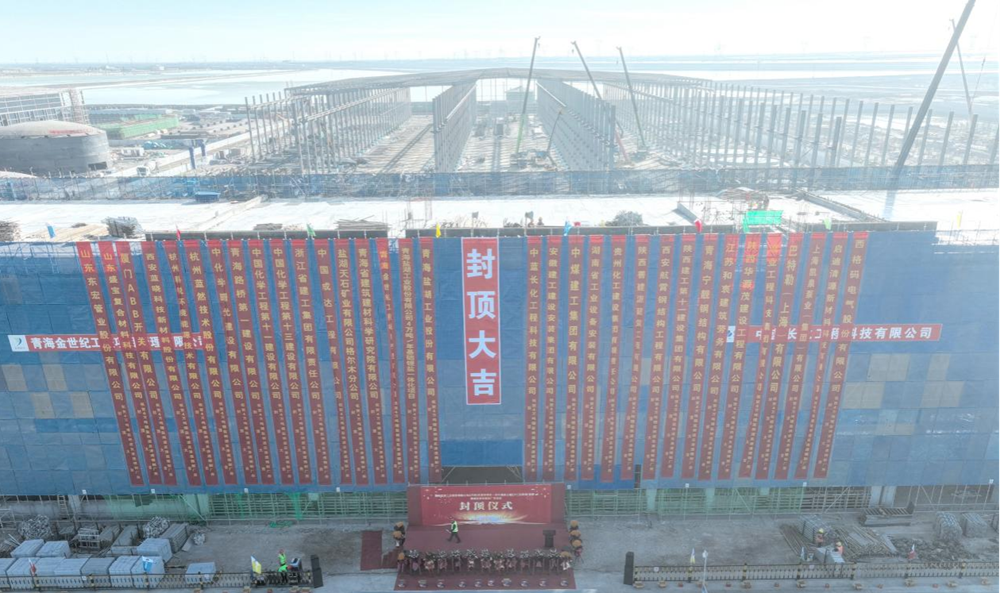 10月18日上午,,,365英国上市装置新疆乌苏分公司青海盐湖纳滤反渗透精制厂房修建工程项目举行变电所主体结构封顶仪式,,,陪同着最后一方混凝土浇筑到位,,,变电所主体被“封顶大吉”的大红条幅和红色祝福口号装点得格外喜庆!建设单位、监理单位、总包单位的相关向导出席仪式并致辞,,,盐湖 4万吨/年基础锂盐一体化项目全体参建单位以及项目部全体成员、现场工人代表加入了仪式。。。。
