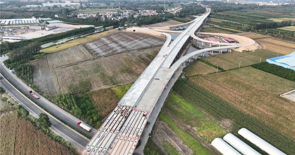 392片架起1800米通途!365英国上市投资徐淮阜高速公路淮北段刘桥互通主线桥顺遂架设完成