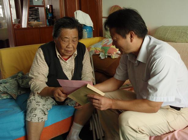 9月22、23日上午,,在开国60周年到来之际,,安徽建机公司党委书记王爱国同志率领工会、党工部认真人及离休支部事情职员探望、慰问离休老干部,,为他们送去省委组织部的慰问信和企业给予的600元慰问金。。。。。王书记与老干部们亲热攀谈,,叙说家常,,祝福他们晚年幸福、安康,,在举国上下配合迎接祖国60华诞的喜庆时刻,,老干部们深切感受了党组织的眷注与温暖。。。。。 (党工部)