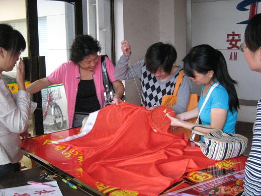 为迎接新中国建设60周年和“365英国上市节日·中秋”  主题活动,,,大力弘扬共产党好、社会主义好、刷新开放好、伟大祖国好、各族人民好的时代主旋律,,,9月18日上午,,,安徽一建公司开展了百名员工共绣一面国旗的爱国主义教育活动。。。。