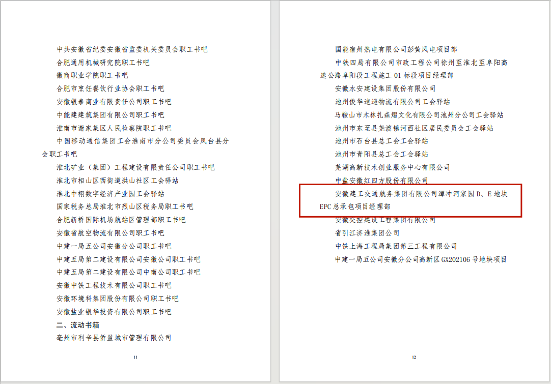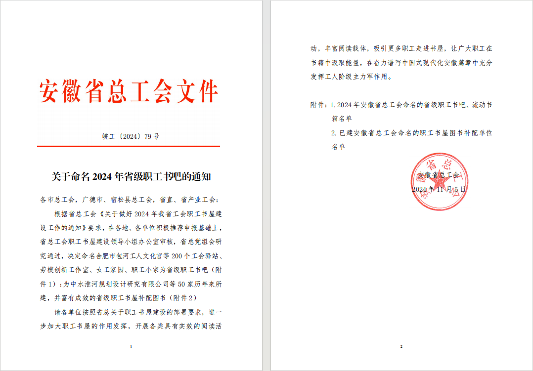 克日,,安徽省总工会宣布《关于命名2024年省级职工书吧的通知》,,公司潭冲河家园项目榜上著名,,获评2024年安徽省总工会“流动书箱”声誉称呼。。。。。