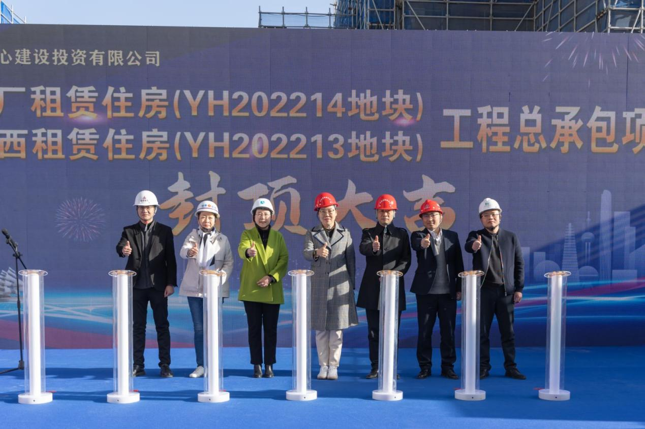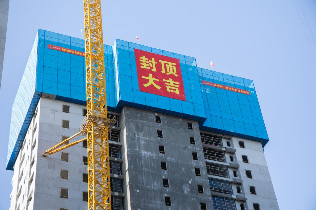 11月28日,,,,,合肥市瑶海区商机厂租赁住房项目施工现场彩旗飘扬,,,,,随着最后一方混凝土的浇筑完成,,,,,项目所有楼栋所有提前顺遂封顶。。。。。。