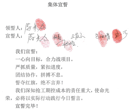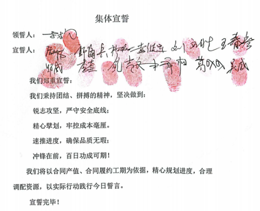 12月22日,,某项目召开“大干三十天,,抢工期控本钱”誓师大会,,要谴责体项目成员严酷落实生产目的,,做到资源设置合理、规范,,做好项目本钱、进度、清静全历程管控,,全力以赴完成年度指标!