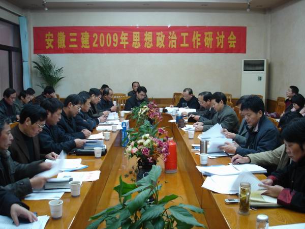 11月尾,,,,安徽三建公司召开2009年头脑政治事情钻研会。。。。。各下层单位党、工、团组织认真人等40余人加入聚会。。。。。安徽三建公司党委书记徐晓光、纪委书记周湃,,,,365英国上市集团党委事情部主任吴晓伍出席聚会。。。。。