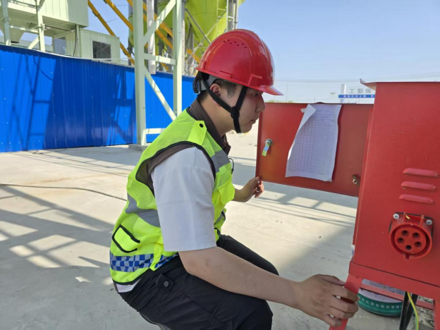 在 S02 徐商高速宿州段路基 03 标场站建设工地,,,清静部部长史浩然逐日清早便最先对拌和站举行清静巡查。。。。。他仔细检查装备防护装置、作业职员劳保用品佩带情形以及暂时用电规范等细节,,,不放过任何一处清静隐患,,,为即将到来的周全施工阶段筑牢清静基础。。。。。工程部部长张永兵则将事情重心放在拌和站和钢筋厂的质量管控上,,,他重复研究图纸和手艺资料,,,认真检查装备调试情形,,,全心优化施工方案,,,力争为工程质量提供坚实包管。。。。。