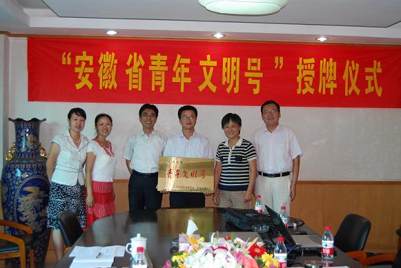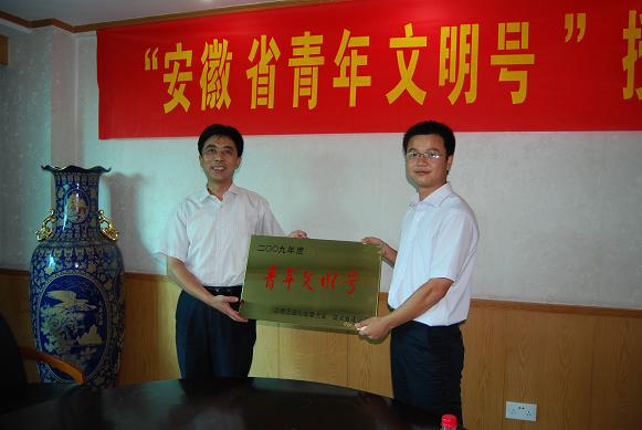 日前,,,从省建设厅文明办传来喜讯:安徽省公路桥梁工程公司六安淠望路大桥项目团支部荣获2009年度安徽省“青年文明号”庆幸称呼。。。。7月27日下昼,,,在路桥公司三楼聚会室盛大举行了“安徽省青年文明号”授牌仪式,,,省建设厅文明办王一建主任向获得省级“青年文明号”的省路桥公司六安市淠望路大桥项目团支部授牌。。。。授牌仪式由集团公司团委书记邢应梅主持,,,省建设厅文明办李玲副主任、公司党委书记陈光磊出席授牌仪式。。。。