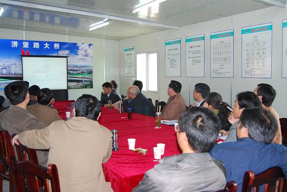 路桥公司副总工黄维树向观摩团一行汇报淠望路大桥项目的总体情形