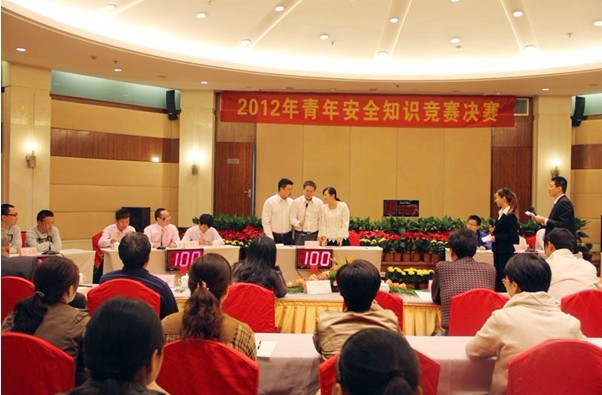 为起劲响应安徽水利“10.12”清静生产月活动,,,,,提高员工清静生产意识,,,,,10月19日上午,,,,,安徽水利在锦江多功效厅举行2012年轻年清静知识竞赛。。。。此次竞赛由安徽水利清静监察局和团委联合举行,,,,,获得了公司向导的高度重视和蚌埠市安监局的大力支持。。。。