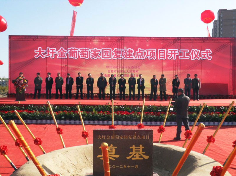 “彩旗飘扬迎党代会胜利召开,,,,,,欢歌漫舞展包河新时代雄风” 2012-11-11上午9时,,,,,,安徽水利承建的大圩金葡萄家园项目举行开工仪式,,,,,,合肥市副市长周善武,,,,,,市政府副秘书长杨伟、市政府副秘书长、建委主任常先米等向导出席了开工仪式。。。