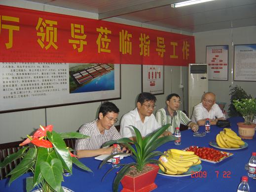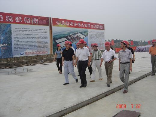 7月22日下昼,,,,,,省政协常委、省住房和城乡建设厅副厅长李建在集团公司党委书记张海平、副总司理、总工程师郑德尧、纪委书记、工会主席刘振武和路港公司总司理许琪的陪同下到省路港公司施工的合肥港综合码头一期工程项目对现场清静文明创365英国上市作举行调研。。省住房和城乡建设厅修建清静办公室主任陈幼年、陈必喜以及集团公司清静监视治理部主任郭道真、工会女工委主任胡爱红等同时陪同调研。。