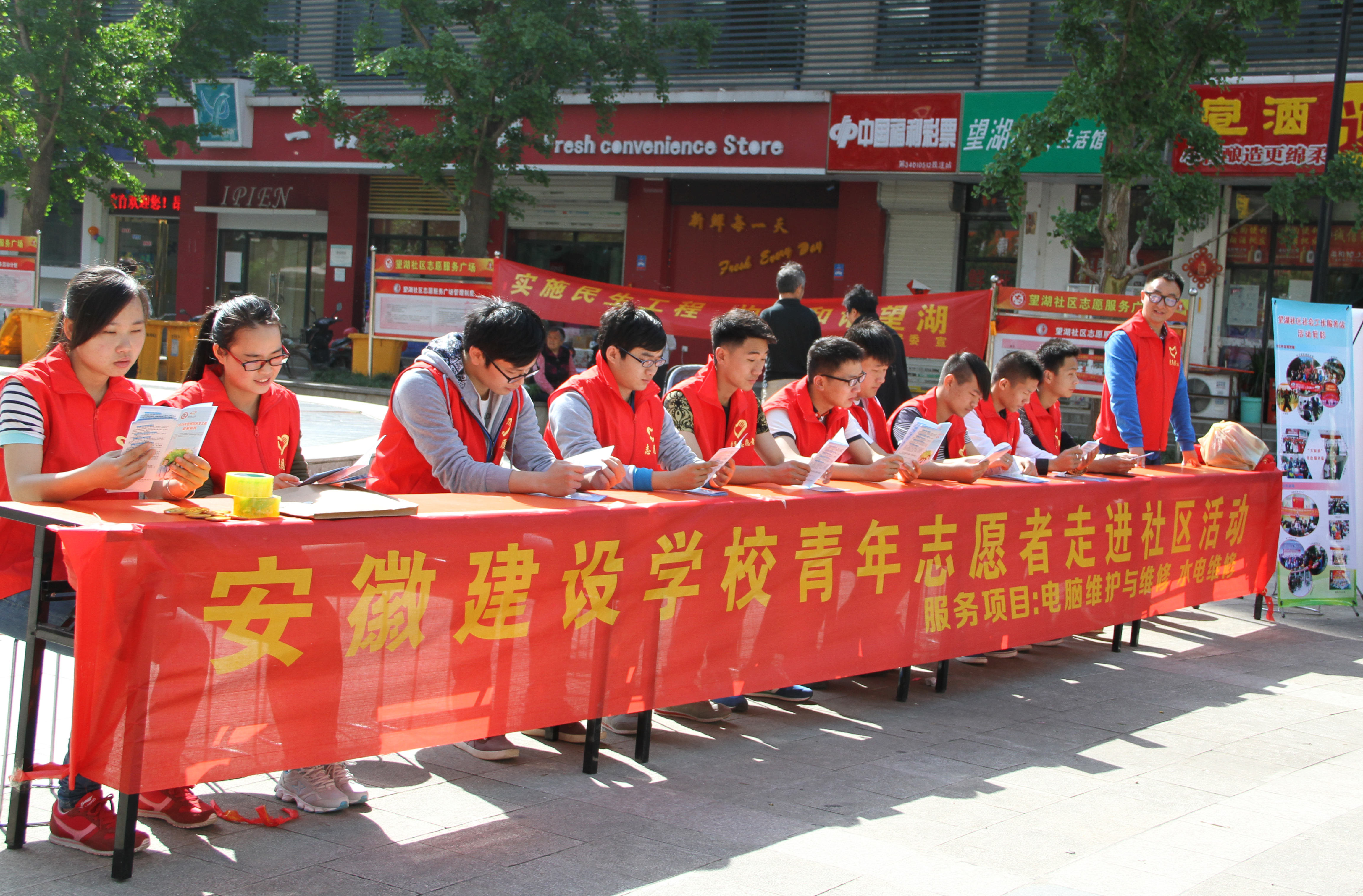 克日,,,安徽建设学校组织在校学生中的专业主干走进合肥市包河区望湖社区,,,对社区内住民的电脑举行免费维护和维修,,,对住民家中的水电举行维修,,,并对社区住民提出的相关专业问题举行现场解答。。