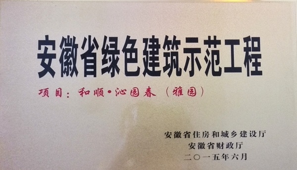 日前,,安徽水利六安温顺“沁园春”雅园项目被安徽省住房和城乡建设厅评为“安徽省绿色康健树模工程”,,成为六安市首家荣获省级绿色修建树模工程的住宅小区。。。温顺·沁园春小区也成为六安地区首个以“绿色·低碳·康健”为主题的高等小区,,有用提升了安徽水利温顺地产品牌形象。。。