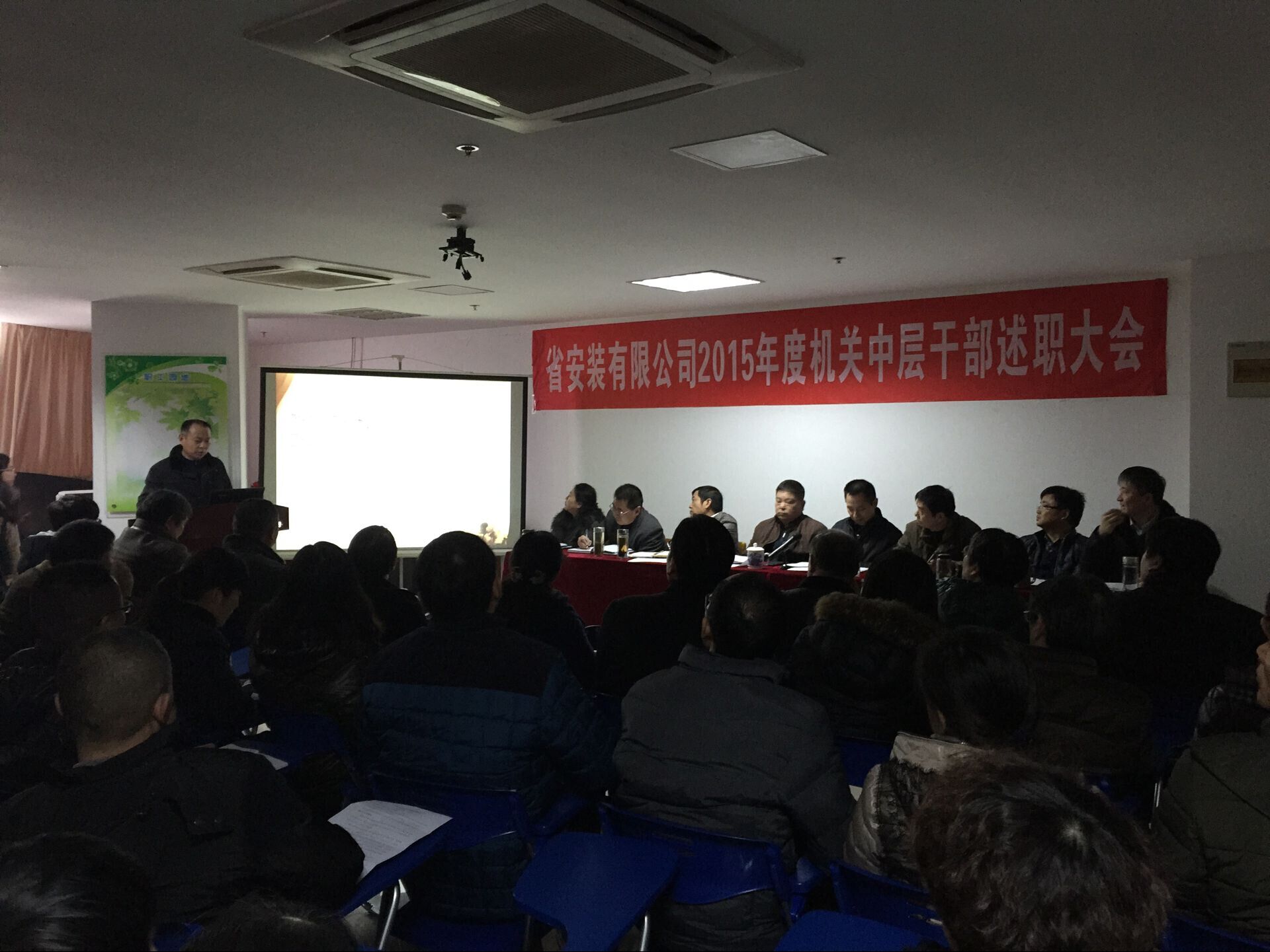 1月18日下昼,,,,,,安徽装置公司召开了2015年度机关中层干部述职大会。。。。。。公司向导班子全体成员、机关中层干部、分公司认真人、机关全体员工加入了此次聚会。。。。。。大会由公司党委书记、副总司理胡六中主持。。。。。。