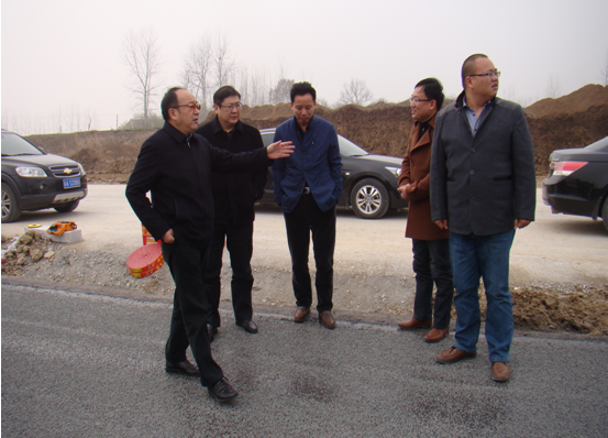2016年2月28日上午,,天长市市长朱纲要、副市长刘正田在市交通局局长於旌方、赵玉龙的陪同下莅临安徽路港公司承建的S312天釜路改建II标项目部现场检查事情。。。