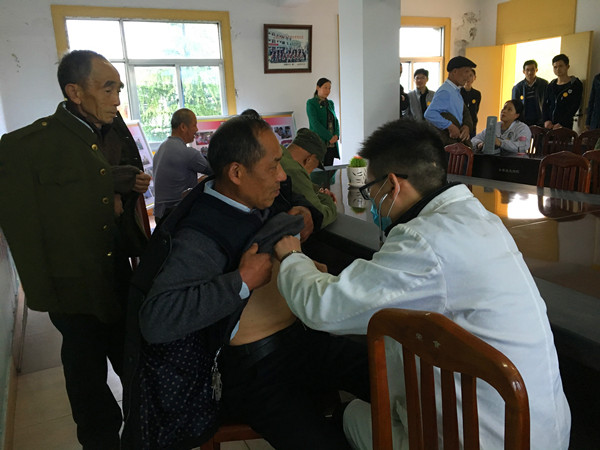 图为安徽三建公司社区医院医生为老人们举行义诊