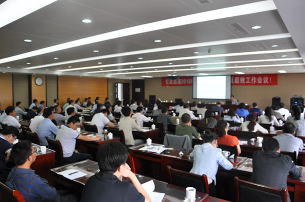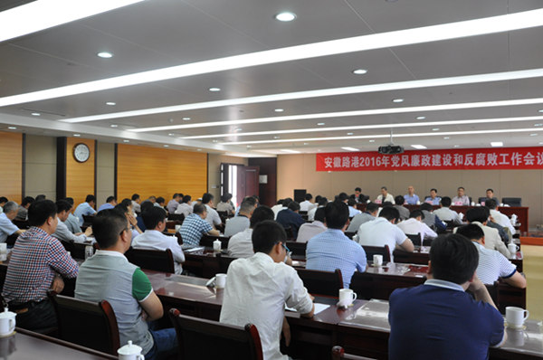 5月6日上午,,,,,,安徽路港公司在省党风廉政建设教育基地召开2016年党风廉政建设和反糜烂事情聚会,,,,,,转达贯彻省国资委、集团党委党风廉政建设和反糜烂事情聚会精神,,,,,,安排了公司2016年岁检监察事情。。公司机关部分副职及以上职员、机关全体党员、子(分)公司向导班子成员、各项目司理及支部书记共有98人加入聚会,,,,,,党委副书记马斌主持聚会。。