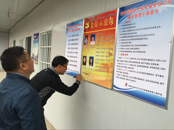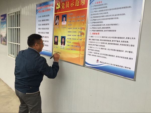 为提高项目部党员和职工的头脑素质和营业能力,,驻足岗位争先创优,,施展下层党组织的引领作用和造血功效,,指导党员驻足本职岗位,,充分验展先锋模范作用,,安徽路港公司S351六舒路与梅山路桥联合党支部于克日组织开展以“驻足岗位、履职尽责”为主题的党员树模岗活动。。。