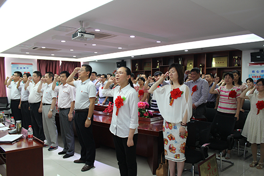 6月29日下昼,,,,,安徽装置公司党委开展“不忘入党初心,,,,,践行入党誓言”主题活动,,,,,全体党员站在庄重鲜艳的党旗下举起右拳,,,,,在领誓人的向导下,,,,,重温入党誓词。。。。。。
