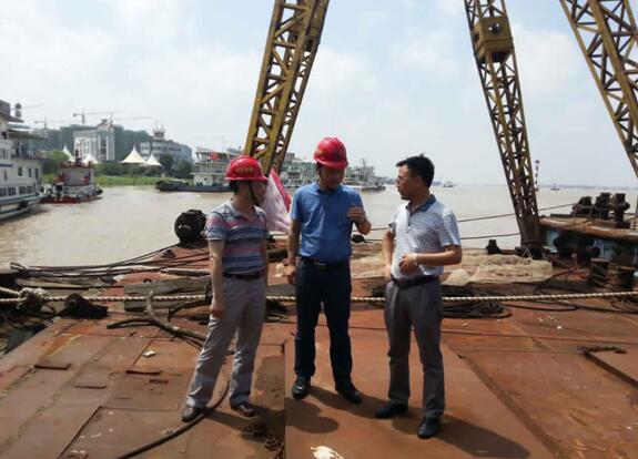 由于近期一连强降雨,,,致使长江中下游水位暴涨,,,已超警戒水位1.0m,,,度汛形势严肃。。。7月8日上午,,,集团公司安监局副主任葛辉携安徽路港清静治理部凌必胜等职员,,,再次实地审查现存的打桩船船体状态、船身牢靠、值班应急值守等情形,,,要求现场认真职员亲近关注长江水位转变,,,安徽路港公司要完善应急预案,,,增强24小时值守并注重值守职员的自身清静,,,要安排专人认真,,,起劲与政府各级防汛指挥部分及芜湖水上公安消防支队和芜湖海事处增强联系,,,坚持信息报送实时准确,,,应急响应和应急处理科学合理,,,确包管碍船舶度汛清静。。。