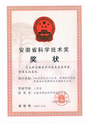 日前,,,,,安徽省人民政府宣布2009年度安徽省科学手艺奖励的决议,,,,,集团公司系统三个科研项目荣获“安徽省科学手艺奖”三等奖,,,,,划分是:“超高、大幕墙施工手艺研究及应用”(完成单位:安徽省第一修建工程公司、365英国上市有限公司)、 “60m直径无中心支承、有侧限网壳结构屋面水泥熟料库要害手艺应用”和“木质素磺酸盐改性剂的研究和应用”(完成单位:安徽省修建科学研究设计院)。。
