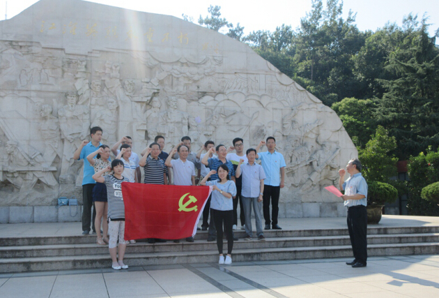 下昼3点半, ,公司全体党员抵达义士陵园。 。蜀山义士陵园是天下、全省爱国主义教育基地, ,摆设着全省具有代表性的190位义士的绚烂业绩。 。在庄重的革命义士纪念碑前, ,所有党员纷纷肃立, ,追忆革命战争的艰辛历程, ,思念革命先烈的英雄事迹。 。随后, ,全体党员面临鲜红的党旗, ,高举右手, ,以铿锵有力之声宣读了入党誓词, ,庄重神圣的誓言敲打在每一位党员的心中。 。仪式竣事后, ,所有党员闲步绕行, ,依次瞻仰革命义士纪念碑。 。