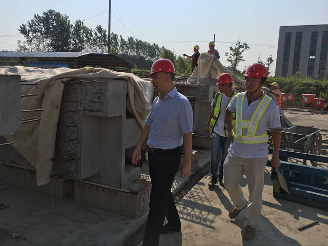 7月26日上午,,,,,,安徽路港公司总司理朱忠明在公司有关部分认真人的陪同下,,,,,,到安徽路港合肥市铜陵路高架项目部施工现场指导事情。。。。